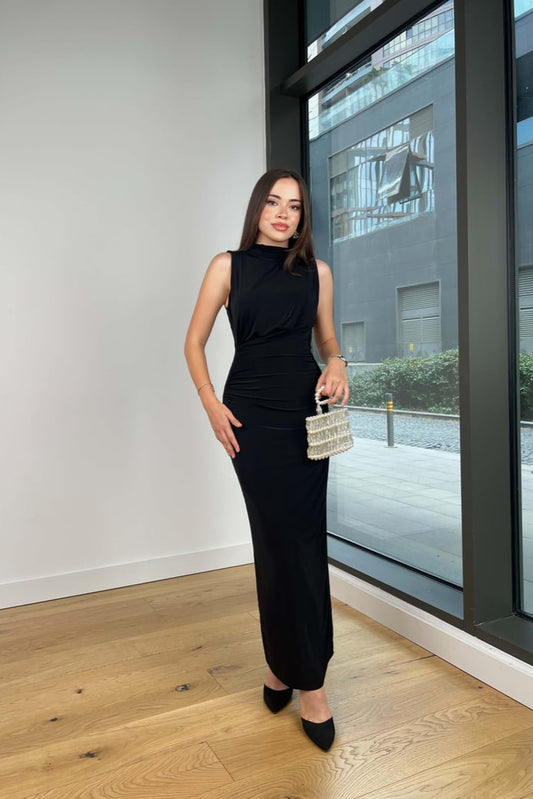 Abito a collo alto con elastico in vita