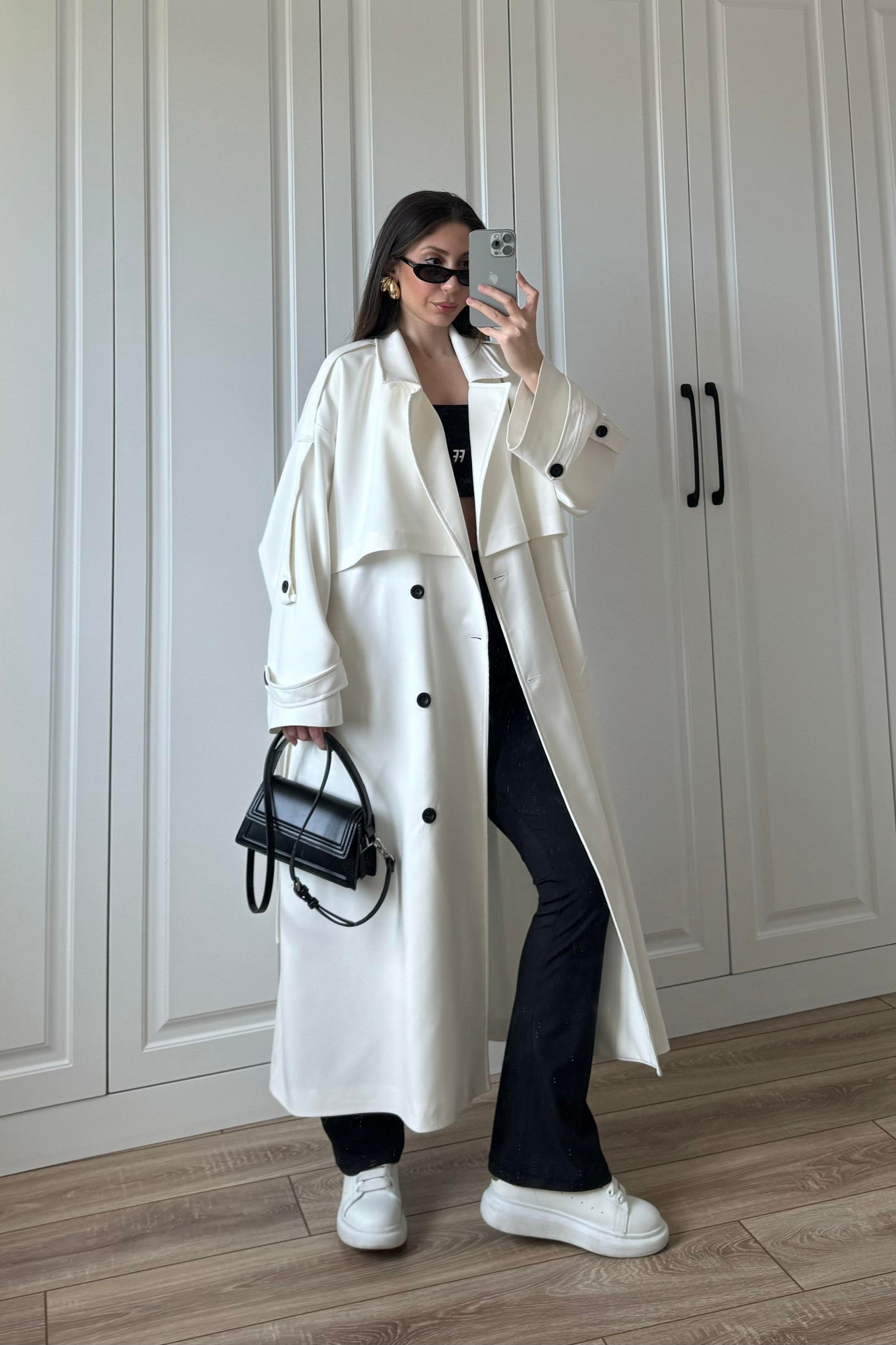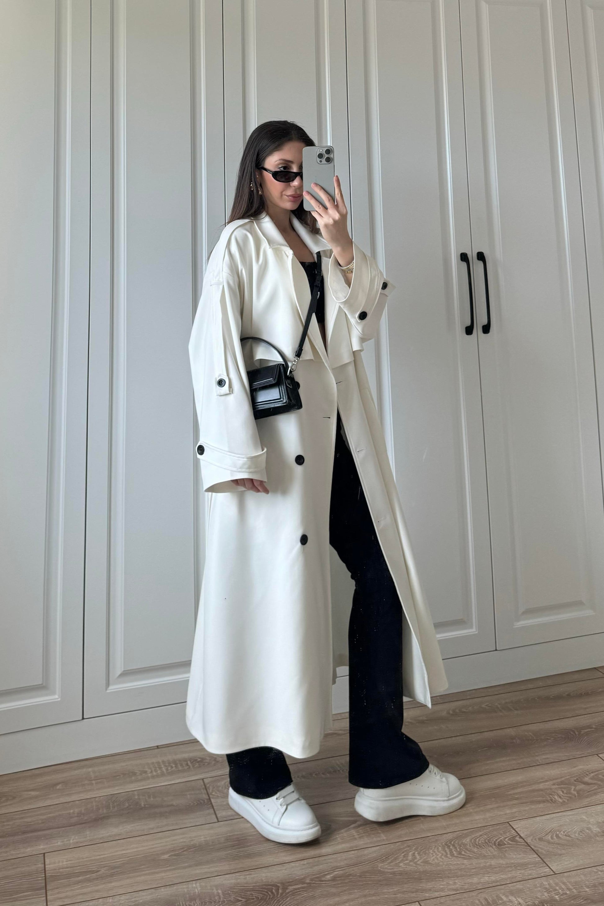 Trench stagionale foderato a gonna lunga
