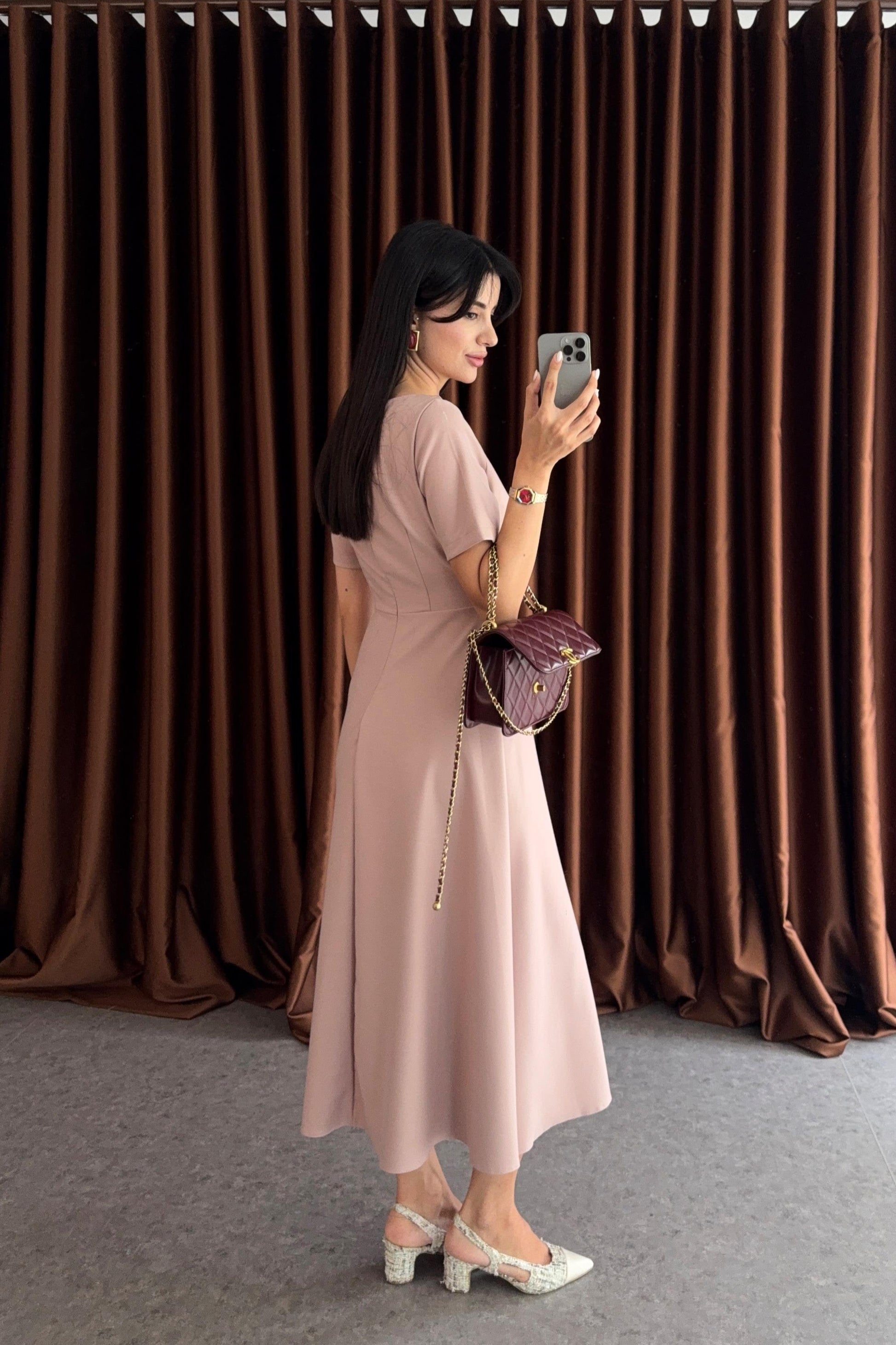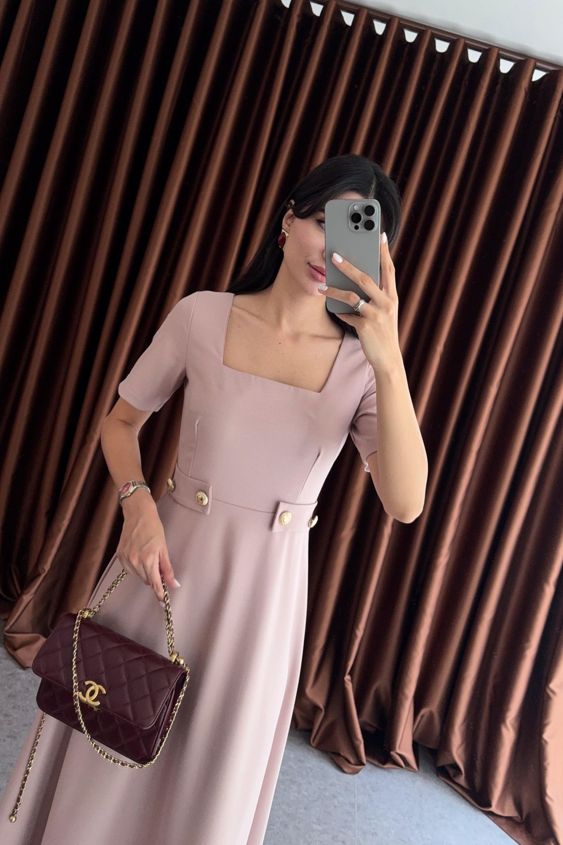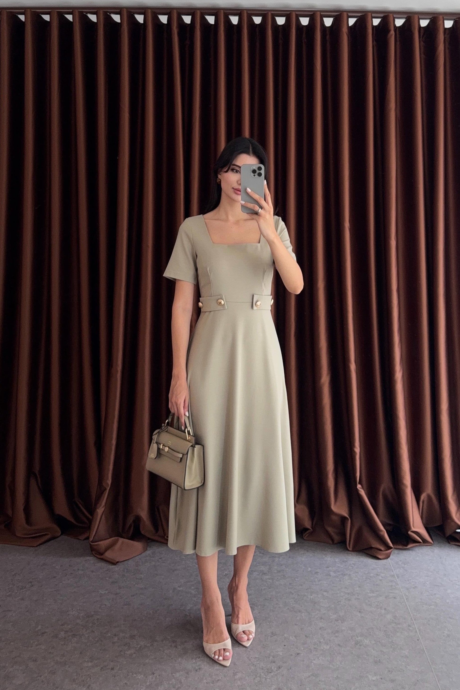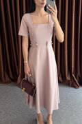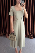 Vestito con scollo quadrato e dettagli con bottoni